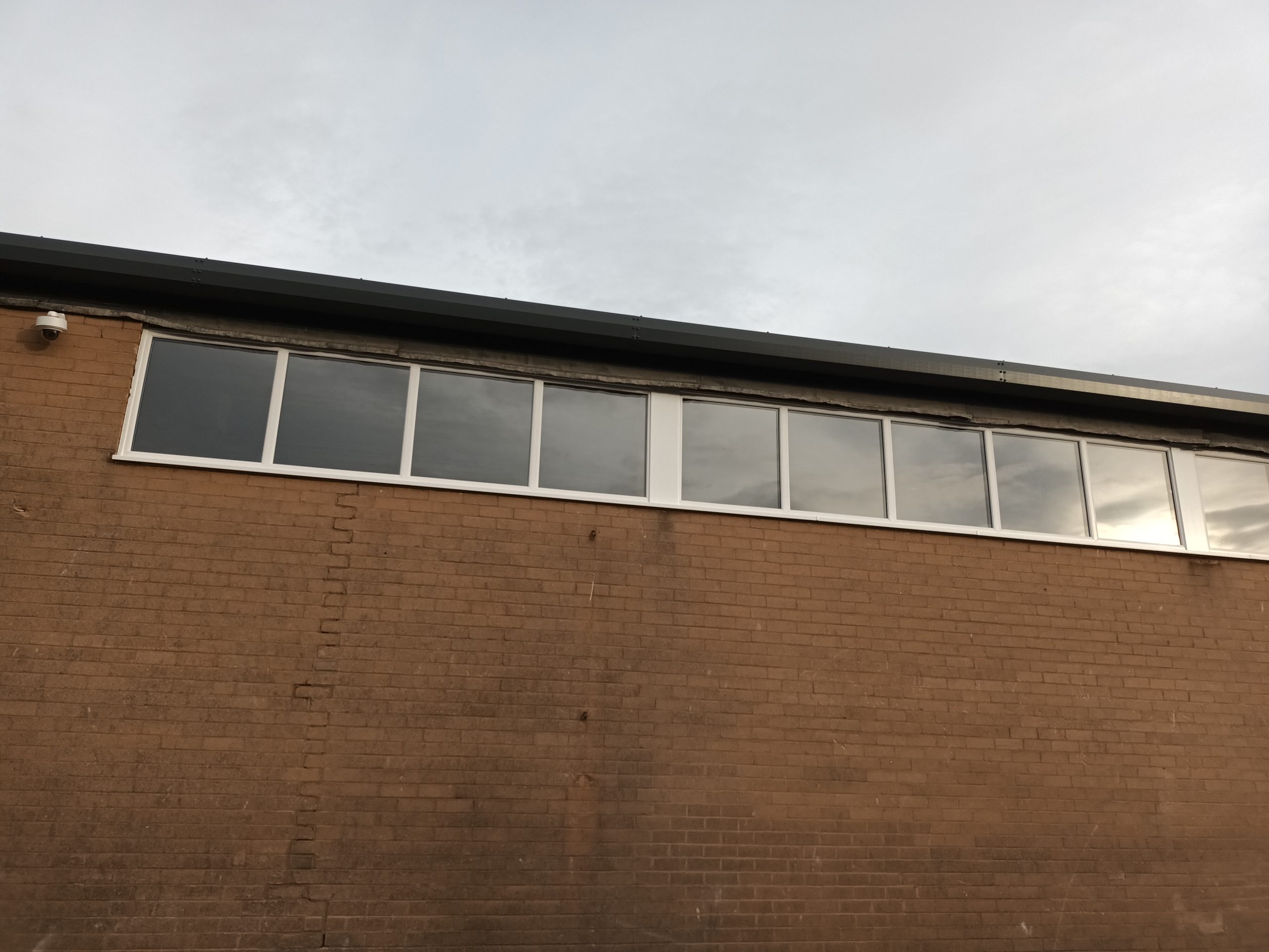 A job well done for our Glasgow Glazing Department. 32 metres run at high level of UPVC double glazed windows, also low level windows.